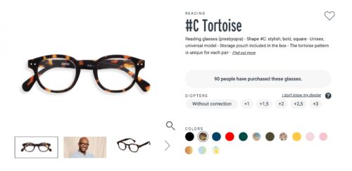 Let’s take a look at the impact that urgency messaging can have: IZIPIZI, an eyewear retailer, decided to add a special message flag next to their product description to show viewers how many people have purchased this product. The idea of this message is to show viewers that this product is popular and to encourage them to take action.