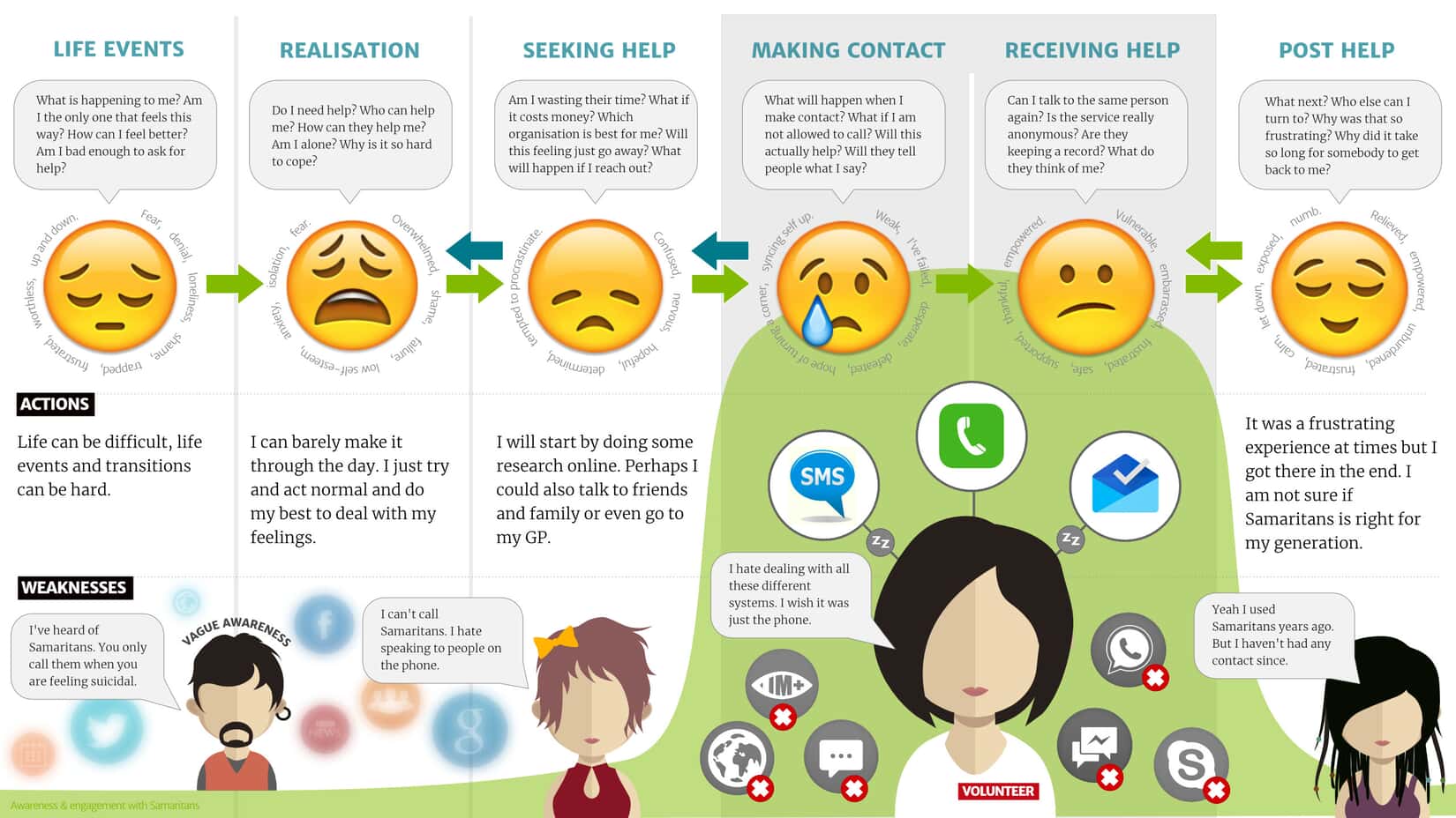 This customer journey map for the charity ‘The Samaritans’ is a highly empathetic map, focused on the purpose of the charity itself. Note how the text is highly visual and therefore makes it easy to relate to the image of the map itself.