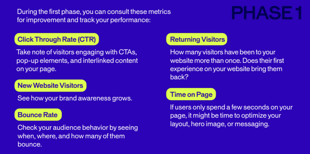 ● Track Secondary Metrics: Go beyond your primary KPIs. Measure secondary metrics, such as time on page, engagement, or bounce rates, to gain a fuller understanding of how users interact with your site.