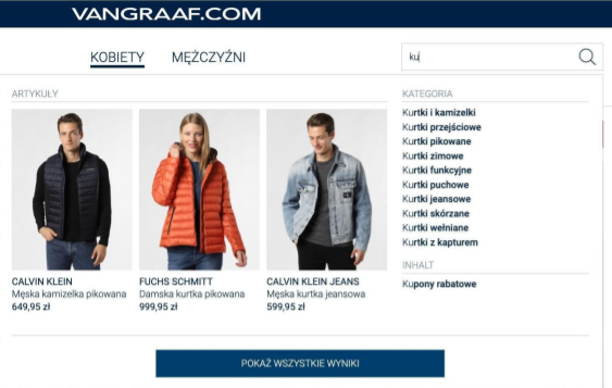 Epoq Intelligent Search added essential features to the site’s search functionality, such as error tolerance, a multi-faceted filter function for after-search navigation, intelligent product sorting and forwarding to specific landing pages. VAN GRAAF also placed heavy importance on matching synonyms in search results.